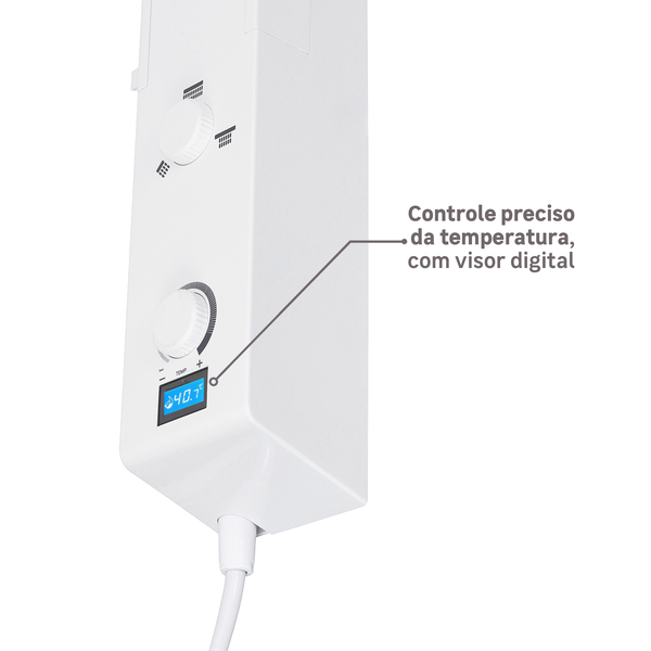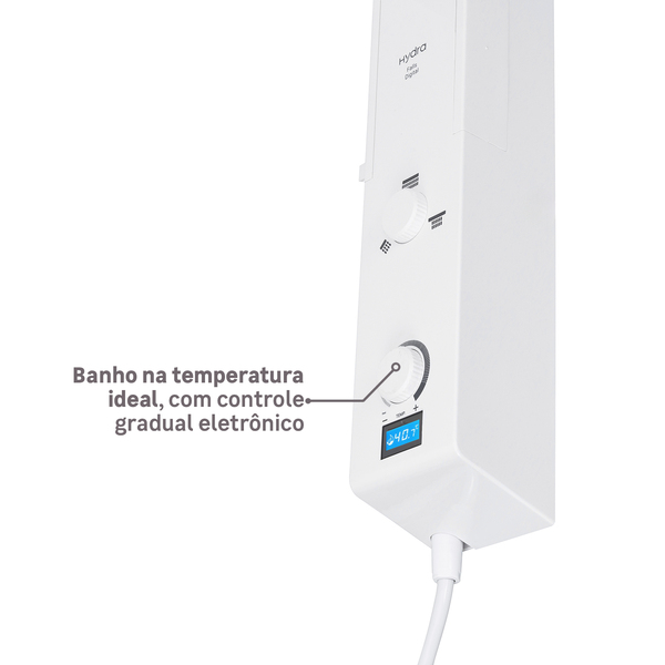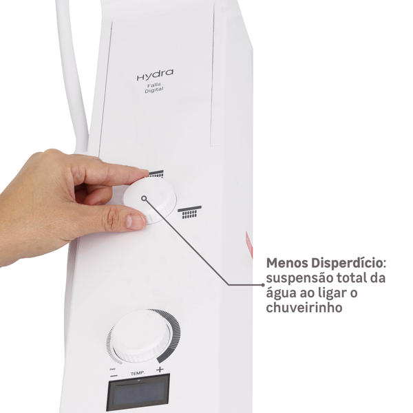 Chuveiro Elétrico Eletrônico Falls, da Hydra Transforme seu banheiro e eleve sua experiência no banho. Controle preciso da temperatura, com visor digital O visor digital te permite visualizar a temperatura da água em tempo real, assim você pode ajustá-la com precisão, garantindo um banho mais confortável e seguro. Personalize seu banho, com duas saídas de água Com duas saídas de água o chuveiro elétrico Falls oferece uma experiência de banho versátil e personalizada. A opção de ducha proporciona um jato direcionável e concentrado, ideal para momentos de relaxamento ou para direcionar a água com precisão para áreas específicas do corpo, enquanto o chuveiro oferece um jato mais espaçado cobrindo uma área maior e garantindo uma sensação de banho revigorante. Banho na temperatura ideal, com controle gradual eletrônico O controle eletrônico de temperatura permite que você ajuste a temperatura da água de forma gradual e precisa, encontrando facilmente a temperatura ideal para o seu banho. Instalação simplificada, com engate fácil O engate fácil oferece uma solução simples e conveniente: ao contrário dos métodos tradicionais que exigem girar o chuveiro para fixá-lo no cano da parede, o engate fácil elimina essa etapa. Em vez disso, a própria peça do engate que é rosqueada no cano da parede e o chuveiro encaixado na peça, proporcionando uma instalação rápida e sem complicações. Mais conveniência, com troca fácil da resistência O sistema de Troca Fácil da Resistência te oferece mais uma conveniência: ele elimina a necessidade de abrir ou retirar o chuveiro para substituir a resistência, o que permite que qualquer pessoa possa fazer a troca. Conheça mais detalhes sobre o chuveiro Falls : O chuveiro ainda conta com tensão elétrica de 127V (110V) e potência de 5500w, para um banho quente e revigorante. E para garantir tranquilidade, conta com uma garantia de 12 meses e resistência blindada, que oferece mais segurança e durabilidade, impede que o chuveiro queime facilmente e diminui as chances de choques elétricos. Além disso, por serem feitos de borracha, os “furinhos” do chuveiro são mais fáceis de limpar, bastando utensílios simples como panos, escovas com cerdas macias e sabão neutro. Outras características: – Combina 2 tipos de aquecimento: aquece a água com funcionamento elétrico assim que o chuveiro é ligado, mas passa a funcionar com o aquecedor quando a água atinge a temperatura desejada. – Acompanha chuveirinho: uma opção mais direcionada e delicada para o banho. Leroy Merlin Instala: Além de todas as vantagens que este produto já oferece, é possível garantir o melhor desempenho do seu chuveiro por ainda mais tempo com uma instalação adequada, feita por profissionais realmente qualificados. Ao contratar o Leroy Merlin Instala junto com o seu chuveiro, você tem mais de 2.200 profissionais certificados e validados à sua disposição, ganha mais pontos no Programa de Fidelidade Leroy Merlin com Você e pode fazer o parcelamento do serviço na mesma compra. E aí, gostou do Chuveiro Elétrico Eletrônico Falls, da Hydra? Compre aqui em nosso site para receber no conforto de sua casa, ou visite uma de nossas lojas