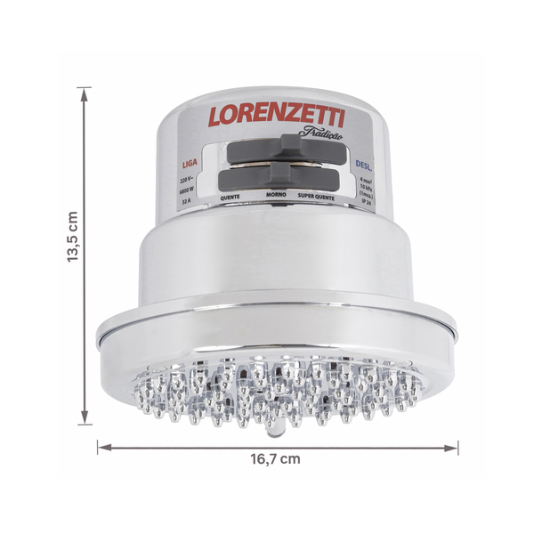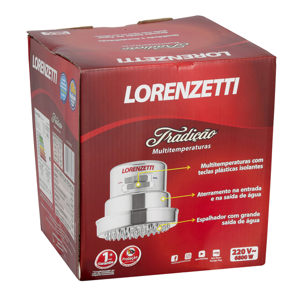 Chuveiro Elétrico Multitemperatura 220V 6800w Cromado Redondo Tradição Lorenzetti